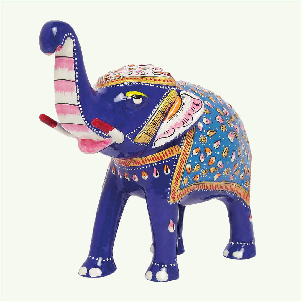 Metal Enamel Handpainted Trunk Up Elephant Big 6 in