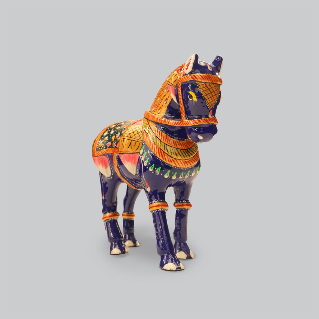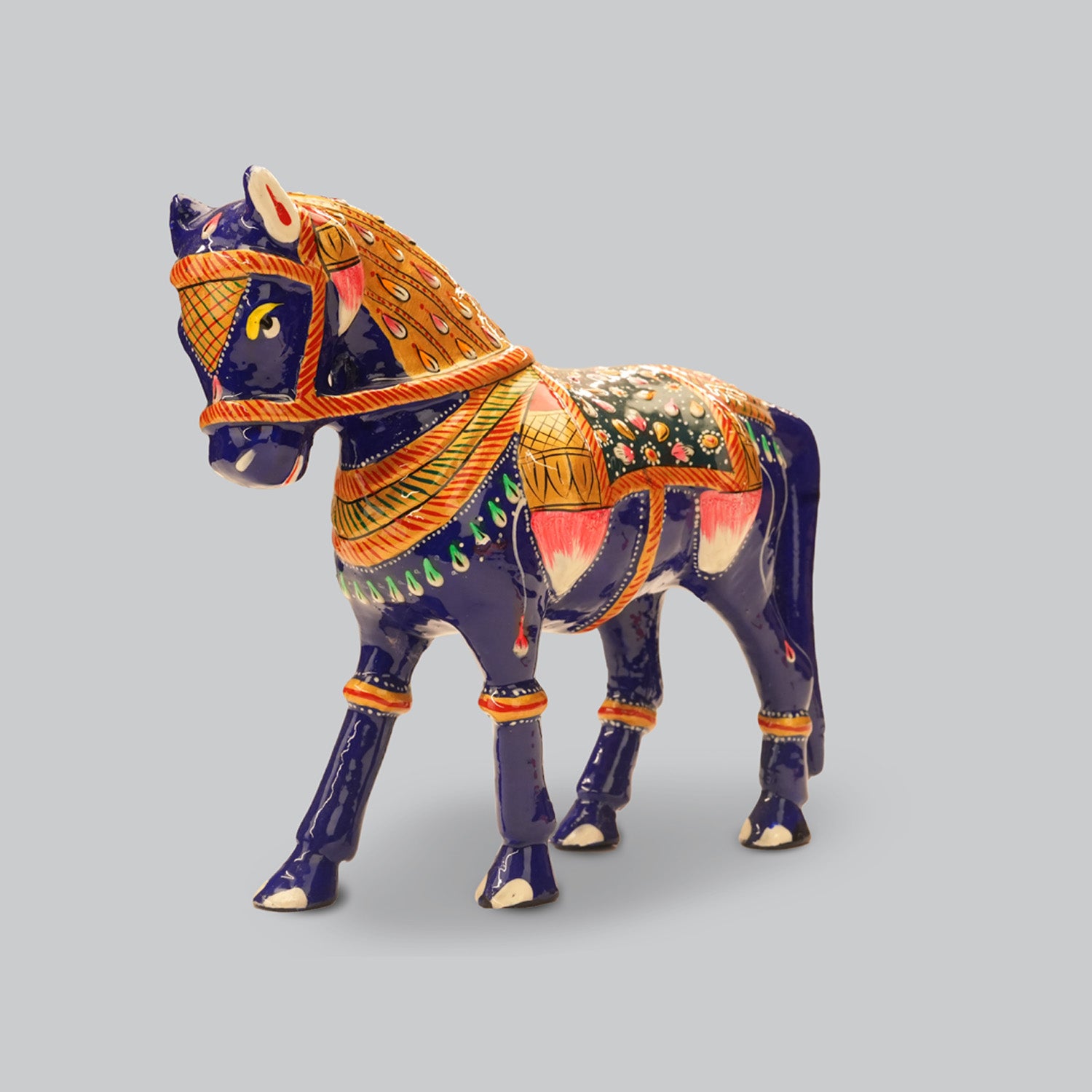 Handcrafted from premium metal and adorned with vibrant enamel work, each artefact showcases a stunning blend of tradition and artistry. The glossy finish and intricate detailing make it a striking décor accent or a thoughtful gift — adding color, culture, and charm to any space.
