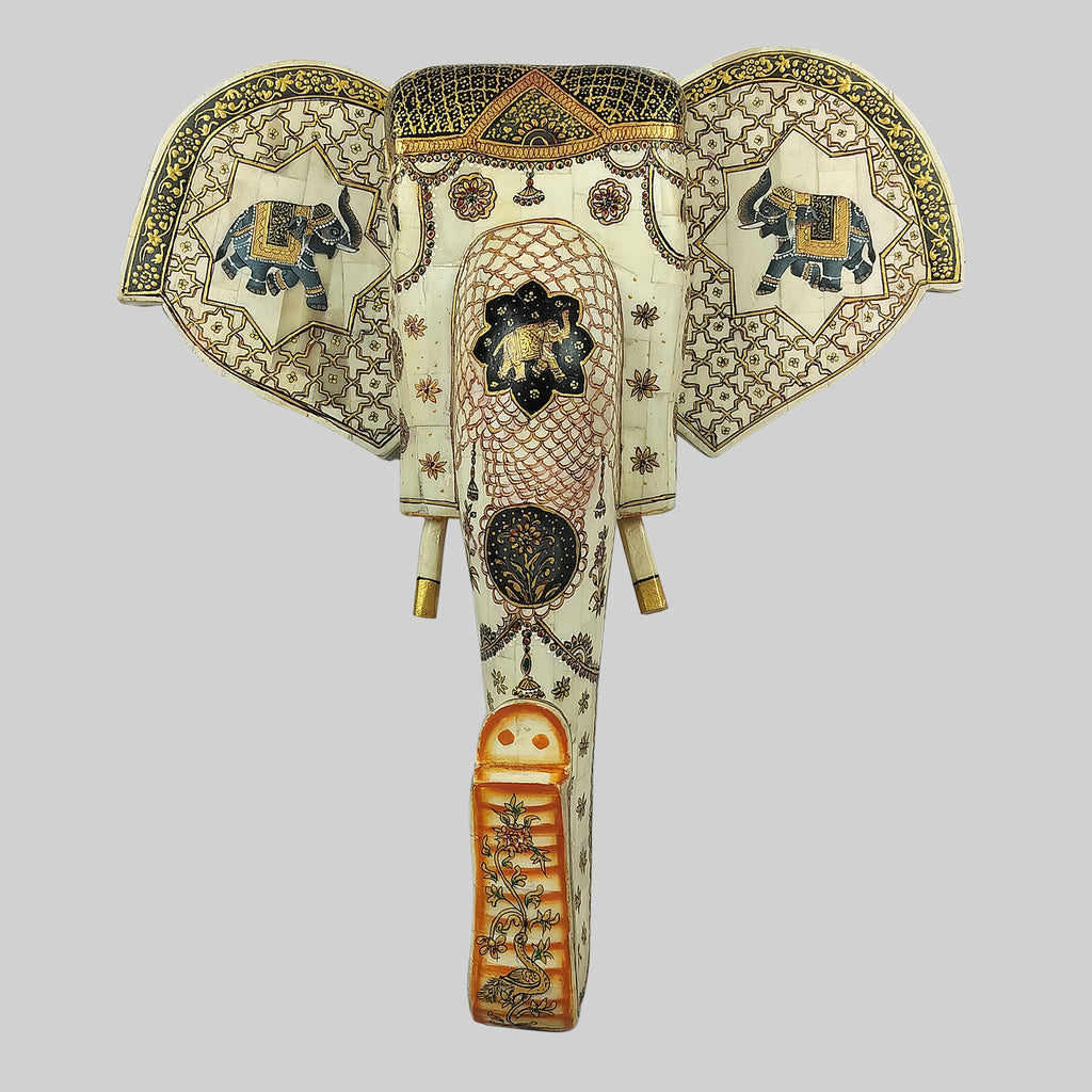 Camel Bone Elephant Mask with Painting 14 in