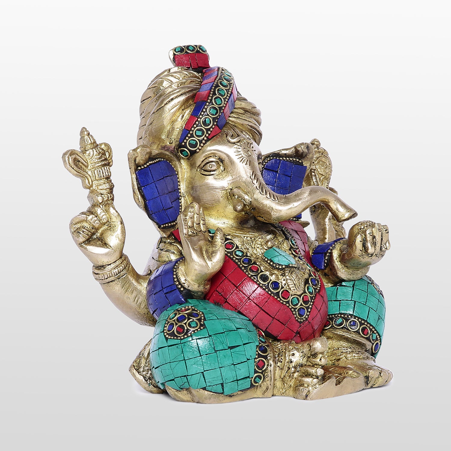 Brass Stonework Ganesha in Turban 8 in