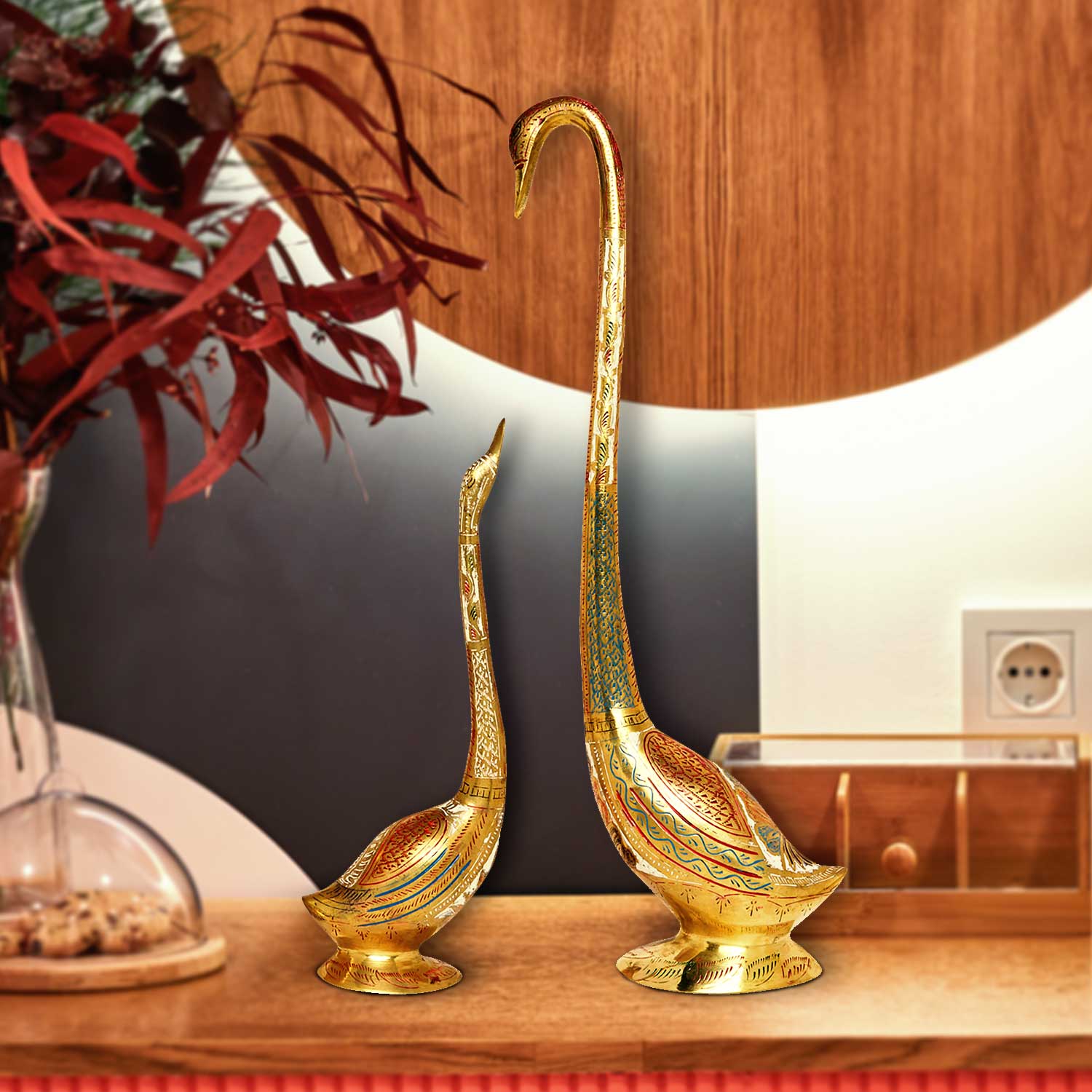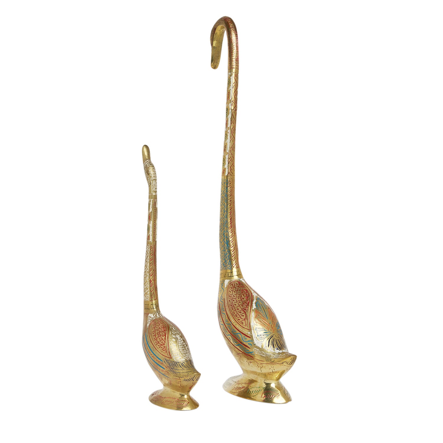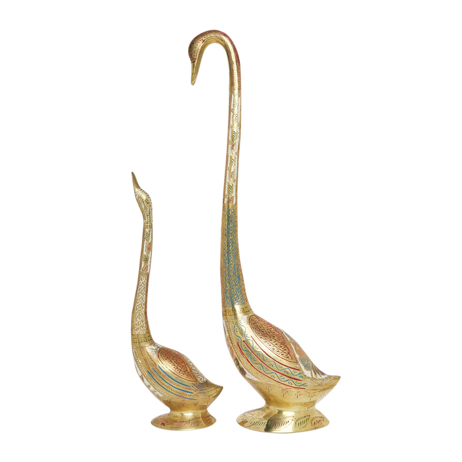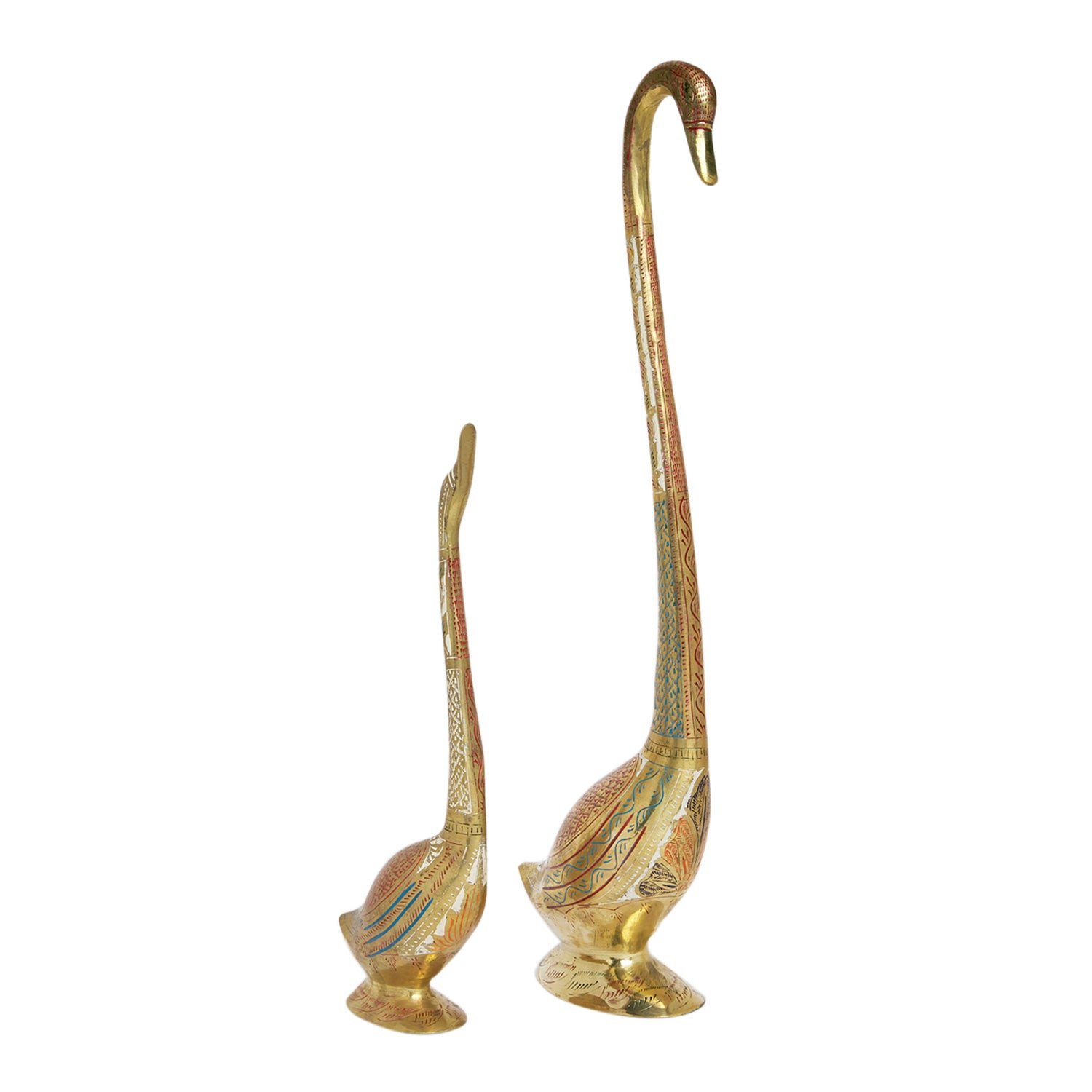 Brass Swan Set Big with Colourful Engraving (Set of 2) - 24 in