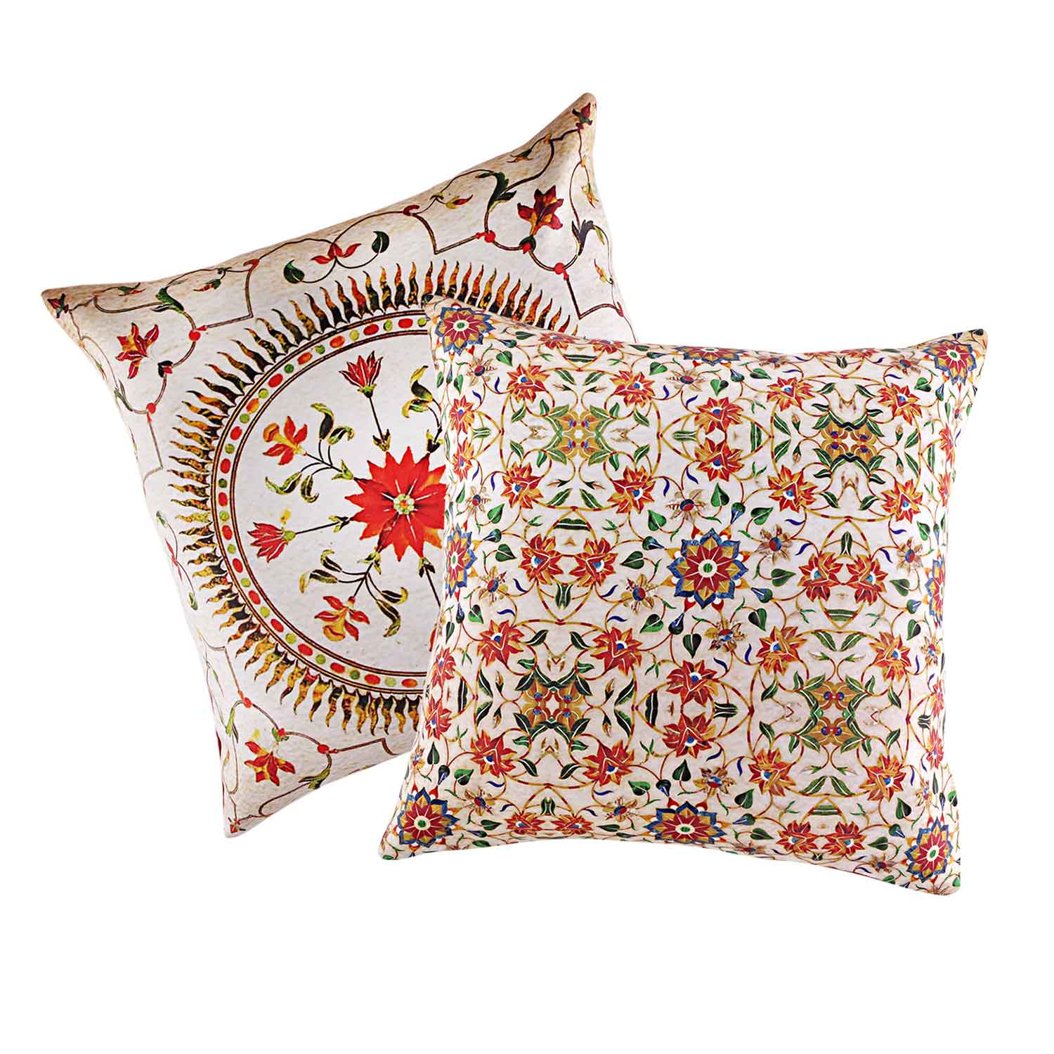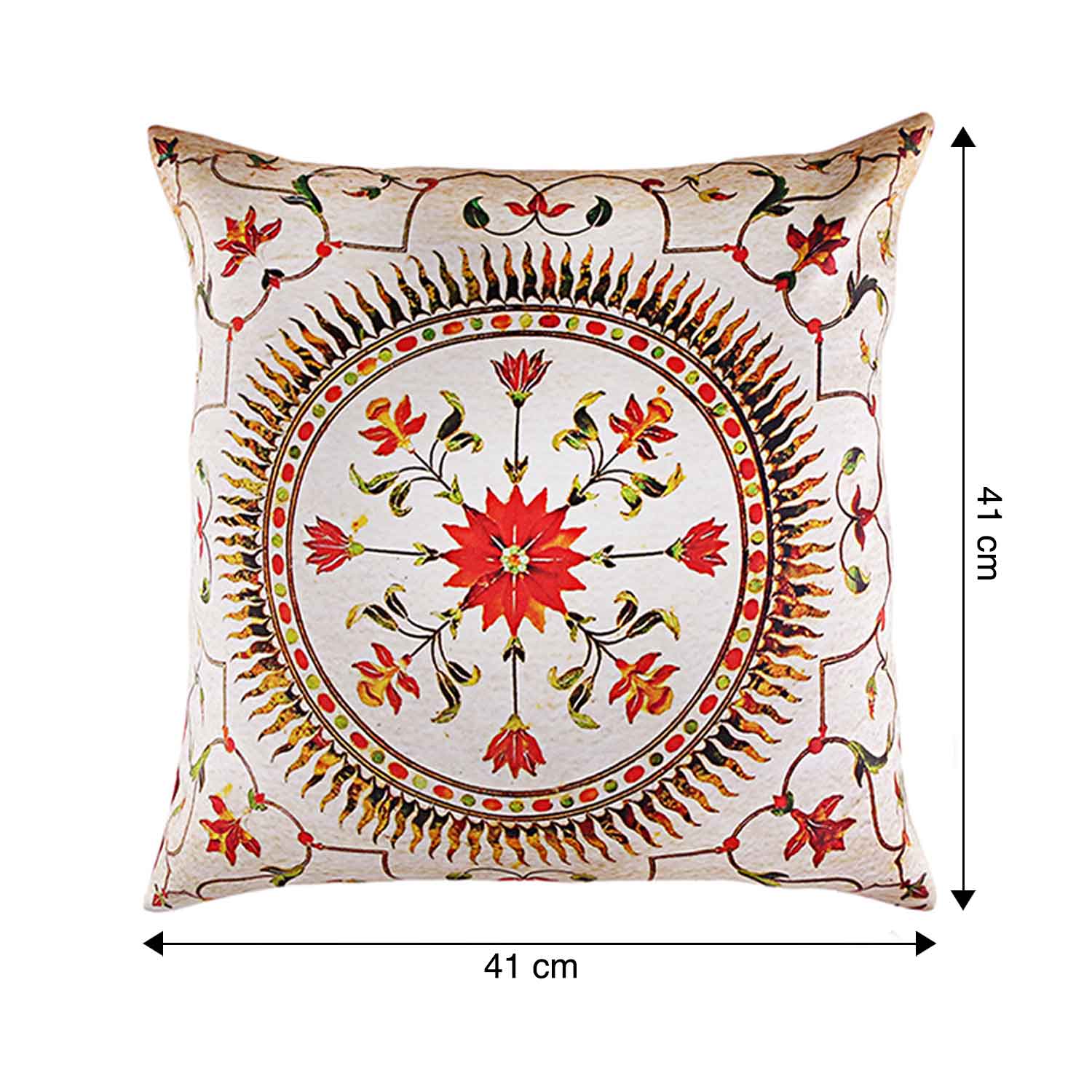 Ethnic designs meet contemporary silhouettes in this charming satin cushion cover. Digital print in the front with a solid back, and a flap stitch closure for the zipper. Add color to your favourite spaces with it in your bedroom, living room or even your car. Perfect for gifting purpose, be it any occasion or celebration.