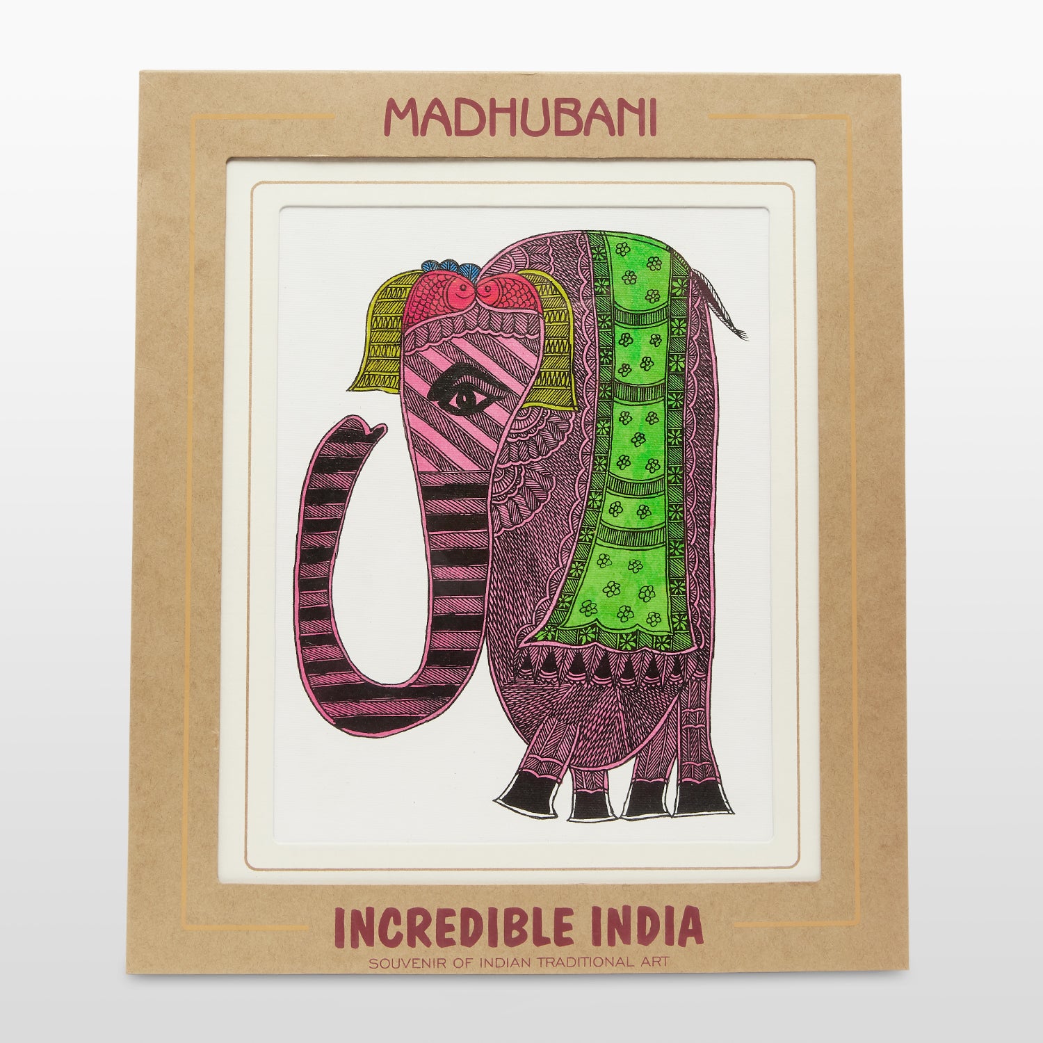 Mount Board Madhubani Art Colorful Elephant Print 12 in x 14 in