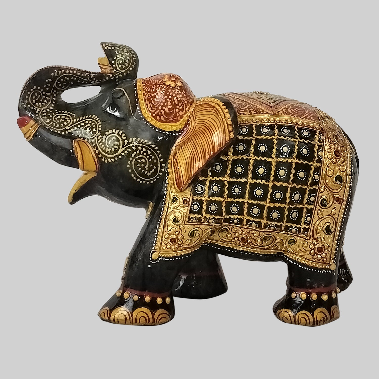 Labradorite Stone Hand Painted Elephant 7 in (3.82 Kg)