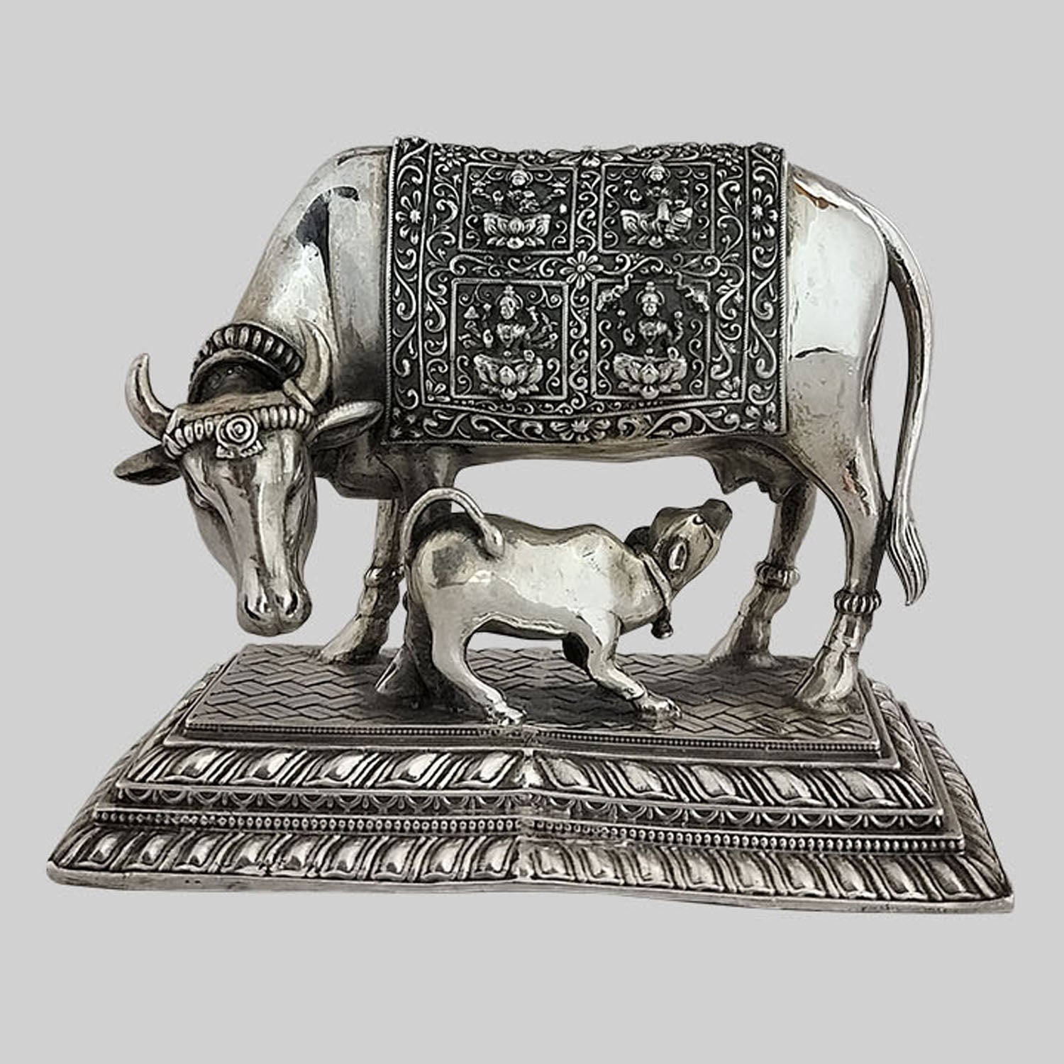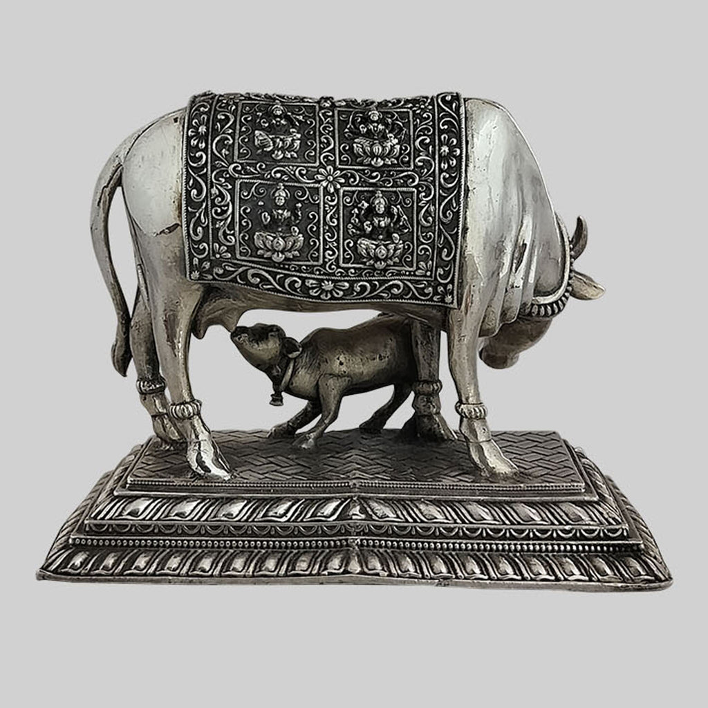 Silver (92.5) Cow & Calf on Base 200.5 gm