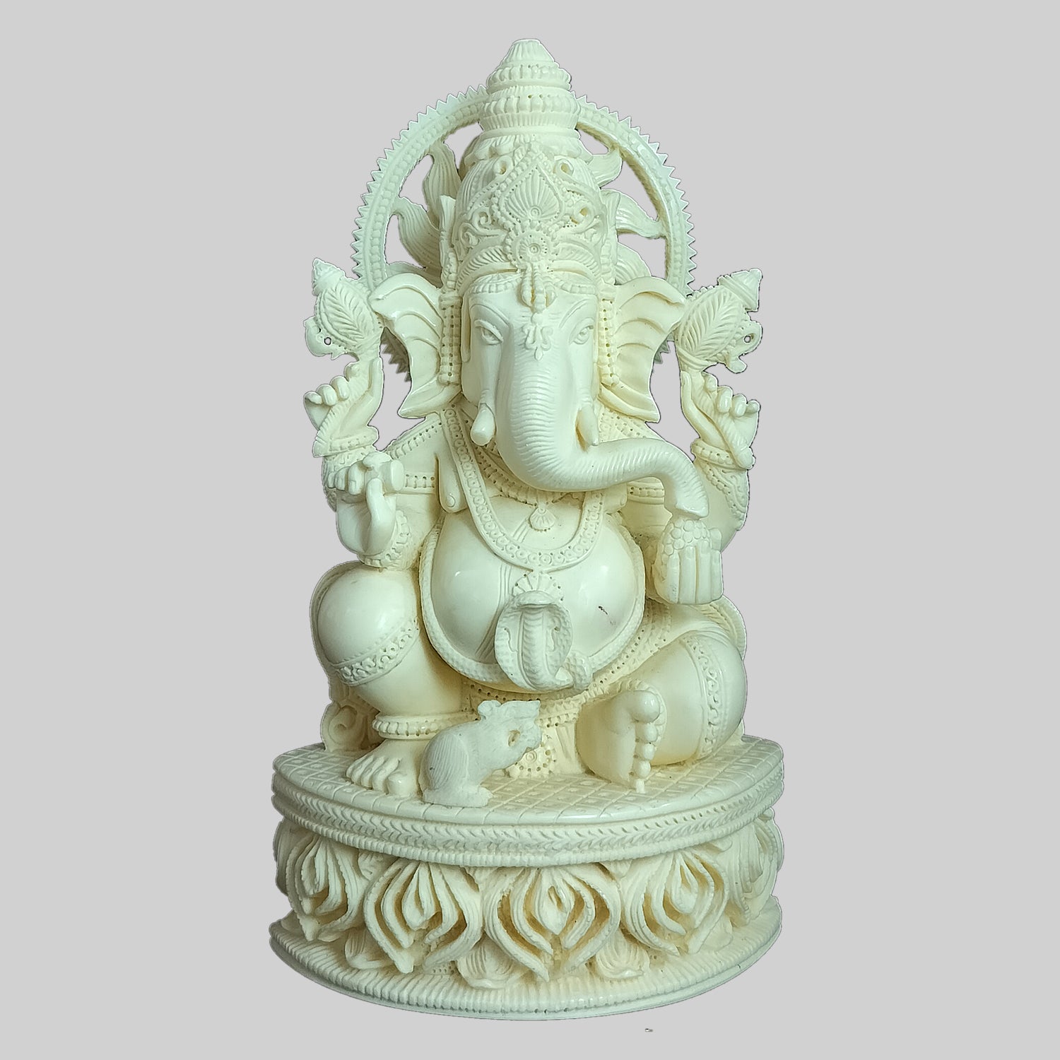 Elegant and finely detailed, this artefact is crafted from marble dust — a blend of marble powder, synthetic resins, and dyes that gives it a smooth white finish. Each piece is first sculpted from a mould, then carefully carved, finished, and hand-painted by skilled artisans with exceptional attention to facial features and embellishments. A timeless creation that reflects grace, craftsmanship, and tradition.