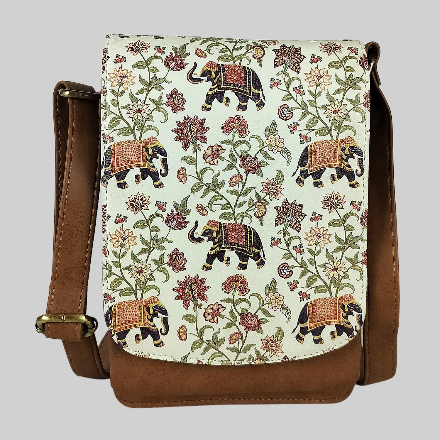 Elephant Floral Faux Leather Rectangle Sling Bag