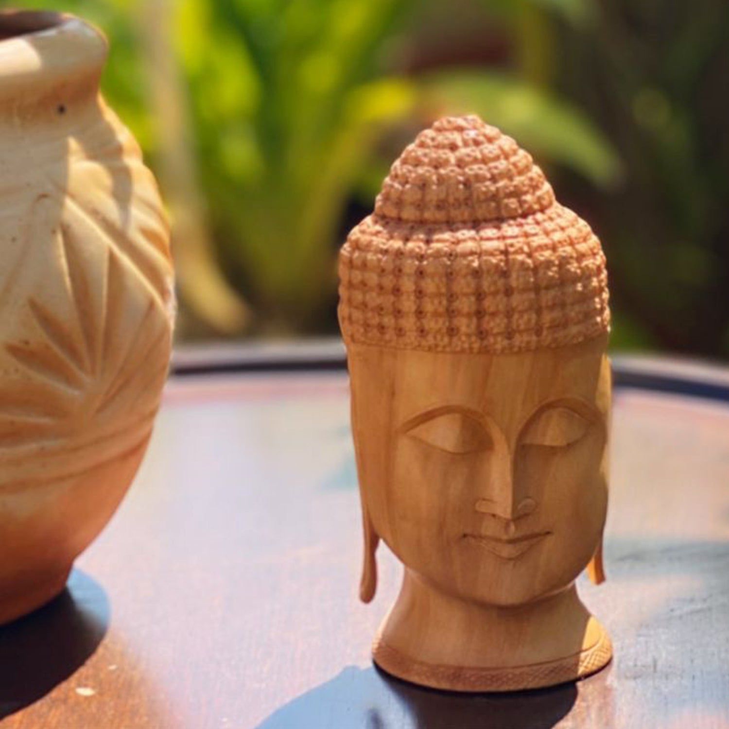 Kadam Wood Handcarved Buddha Head 5 in